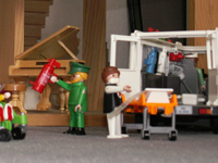 den Brand zu löschen. „Nein!! Doch nicht unten! Es brennt oben!!“, erklingt