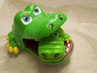 Krokodile, welche durch einen Mechanismus beim Drücken eines bestimmten,